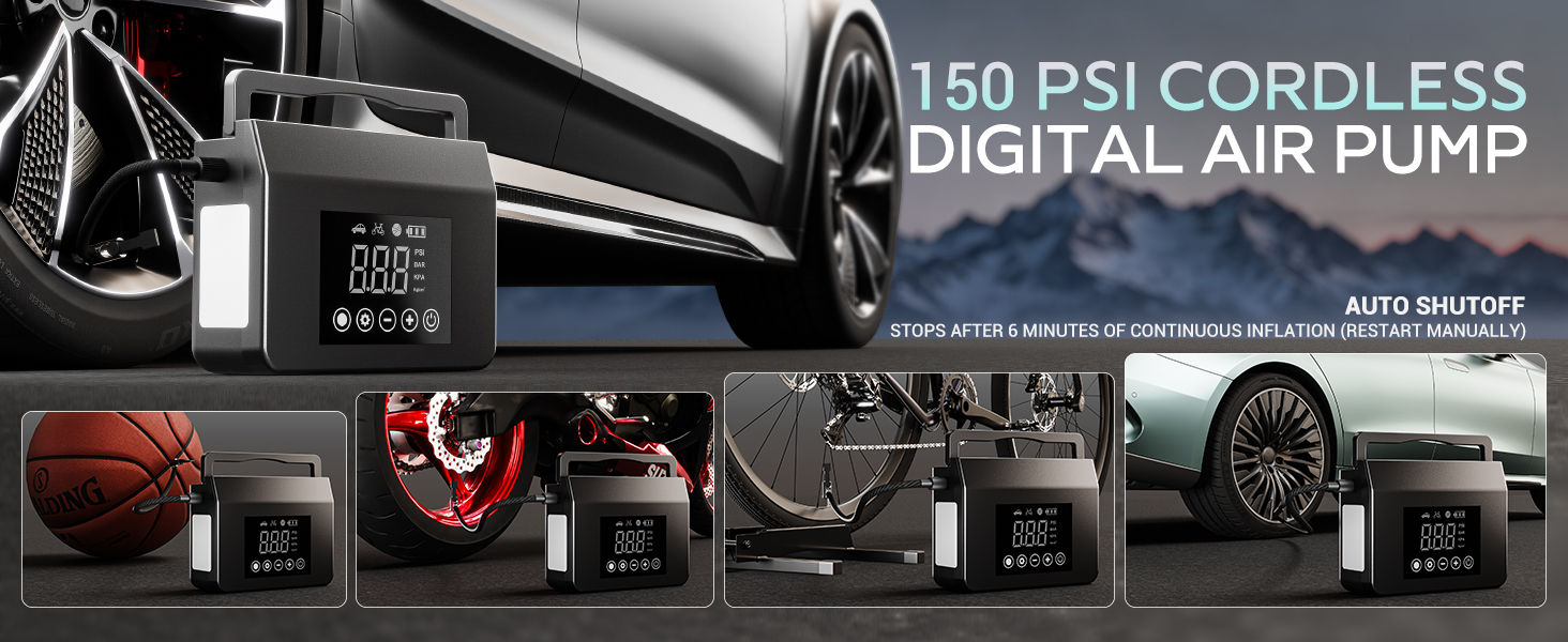 very handy! The 150PsI smart pump auto-stops at your preset pressure,It can add 5 PSI to a cartire in about 1 minute-real set-and-forget convenience.